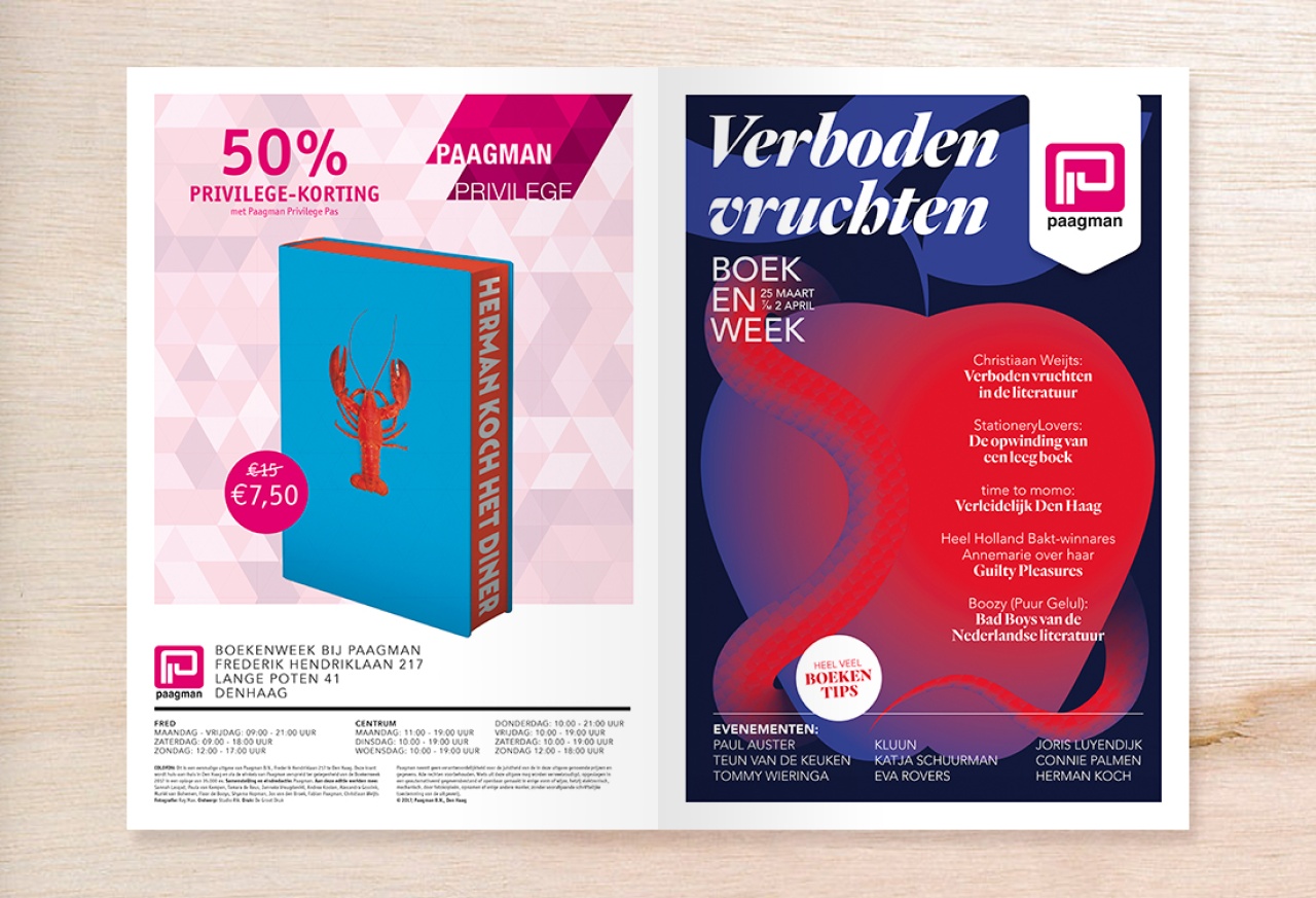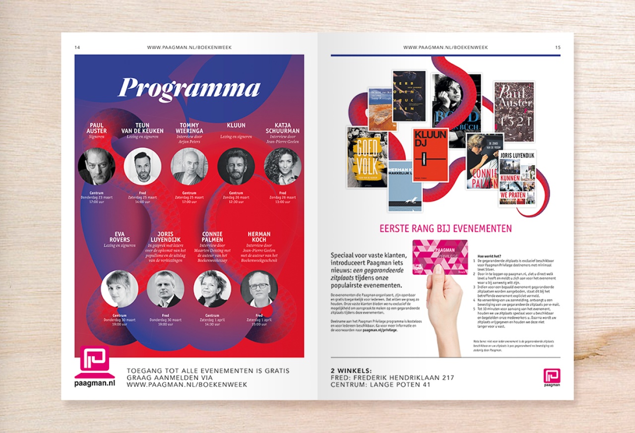 Ontwerp Boekenweekkrant van boekhandel Paagman in Den Haag.