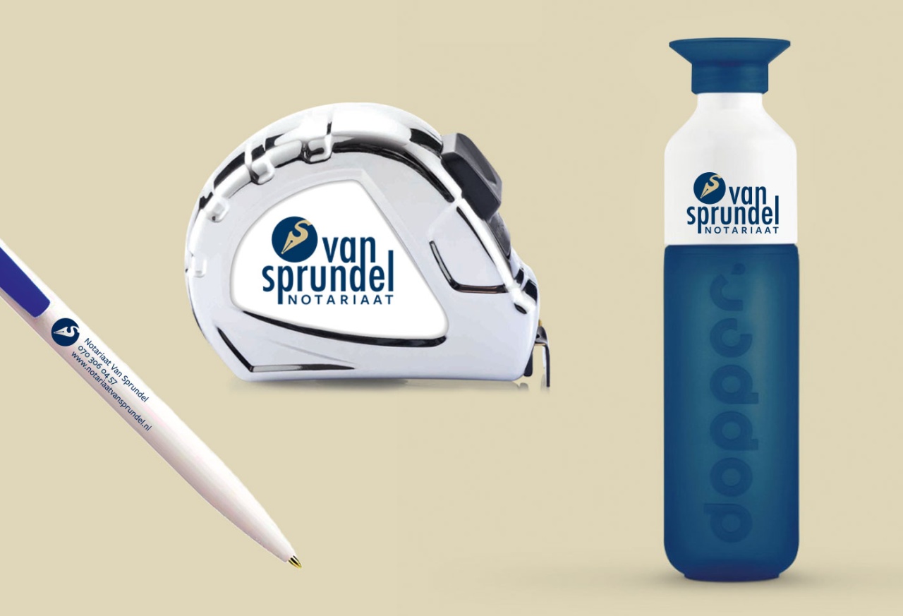 In opdracht van notariaat van Sprundel is er een ontwerp gemaakt voor de nieuwe huisstijl. Het logo is breed inzetbaar op bijvoorbeeld visitekaartjes, briefpapier en enveloppen, maar ook op een kopje koffie of thee, een polo of een rolmaat komt het logo goed tot zijn recht.