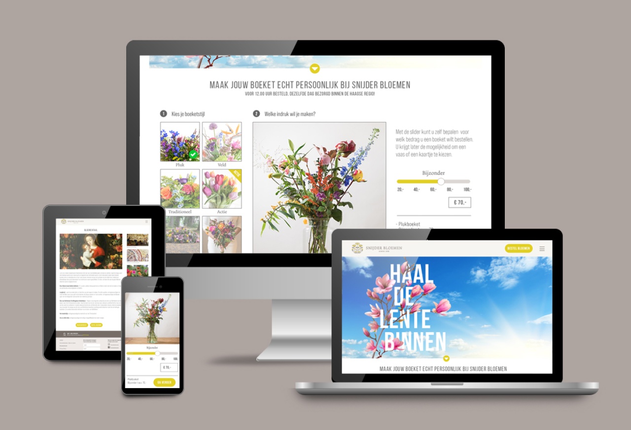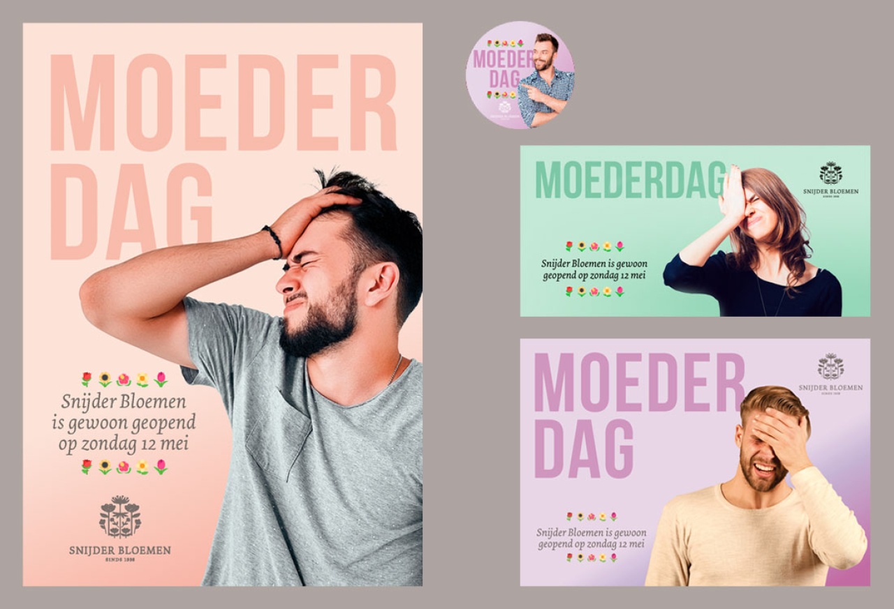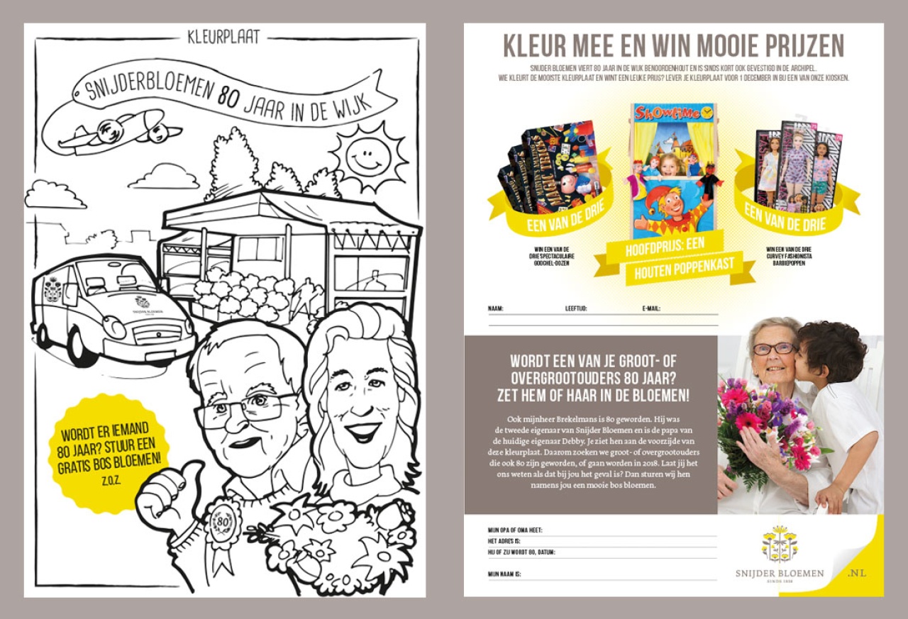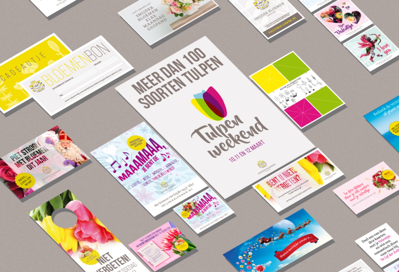 Voor Snijder Bloemen in Den Haag verzorgt Studio Rik al haar communicatie. Van visitekaartje tot website. Bijna elke maand is er wel een actie. Naast traditioneel drukwerk wordt er ook veel gebruik gemaakt van Facebook om de acties te promoten.